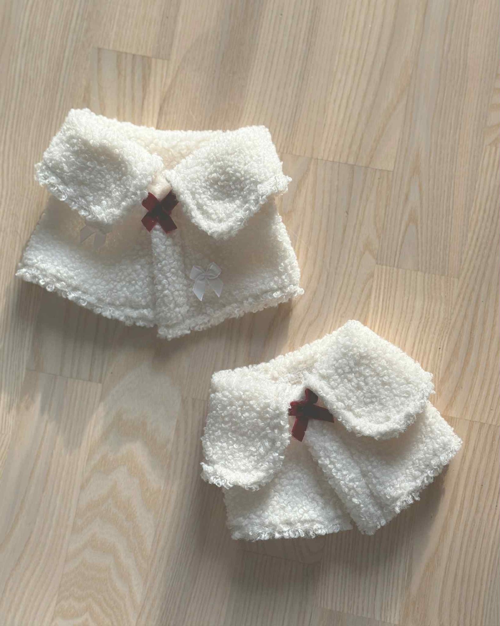 Tai mažas akcentas, kuris sukuria didelį efektą. Augintinis nepraranda savo charakterio, bet atrodo pasiruošęs šventėms taip pat, kaip ir šeimininkai. Galima rinktis iš dviejų modelių – su baltais kaspinėliais arba su vienu kaspinėliu ties užsegimu.